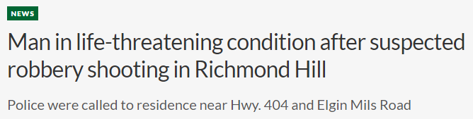 https://www.yorkregion.com/news-story/10804334-man-in-life-threatening-condition-after-suspected-robbery-shooting-in-richmond-hill/ https://globalnews.ca/news/9323553/elgin-404-shooting-richmond-hill