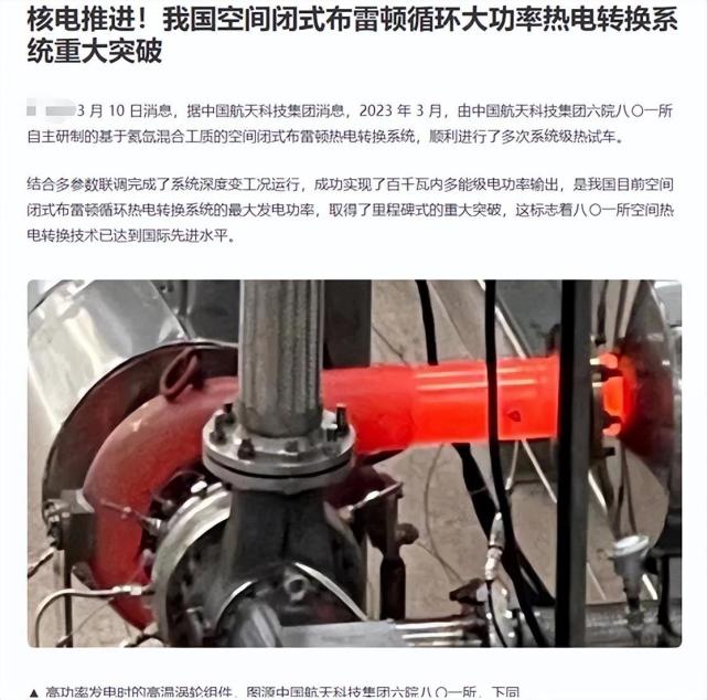 中国航天3月份低调的宣布一项重大进展,那就是【空间闭式布雷顿热电转换系统】顺利进行了多次系统级试车。