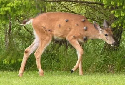 网上不断涌现的大量图片显示,各种鹿在自家后院和野外漫步,全身从头到蹄都覆盖着巨大的、似水疱的疣。野生动物官员表示,尽管这些疣看起来令人作呕,但这些高尔夫球大小的肿块——官方名称为“纤维瘤”——只是非癌性肿瘤。
