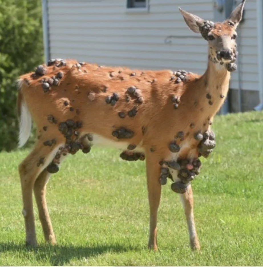 继发现所谓的“僵尸松鼠”“触角兔”后,美国多州近期发现一些野生鹿身上长有形似肿瘤的巨大疣体,被媒体称为“变异鹿”。据报道,近期美国多地民众都见到了这些 “变异”动物,互联网上也在流传着这些惊悚图片。这引发了人们对动物疫情暴发的担忧,甚至有网友声称:“这很像僵尸电影里的情节,一开始都是慢慢出现的。”